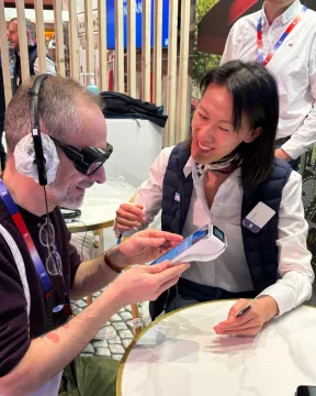 Dans cette même logique, une expérience immersive de simulation de déficience visuelle était proposée sur le stand CB. Ouverte à toutes et tous, elle permettait aux participants de se mettre le temps d’un instant dans la peau d’une personne aveugle ou malvoyante lors d’un paiement. Cette mise en situation a fortement marqué les esprits, révélant à quel point un geste du quotidien peut devenir complexe, voire impossible, en l’absence d’accessibilité adaptée.