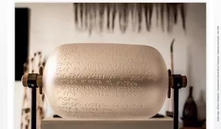 Œuvres à toucher, les sculptures de verre soufflé d’Antonin Funès sont gravées par sablage puis polies avec une technique particulière mise au point par l’artiste, afin d’obtenir les textes d’Emmanuel Simier préalablement transcrits en braille. L’exposition est accompagnée d’un livre en braille et gros caractères afin de pouvoir faire lire l’ensemble des textes gravés aux aveugles, mal-voyants et voyants.