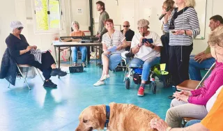 Un mélange joyeux de synthétiseur, de rires fous, de moments tendres avec Tutti, notre chien d’aveugle adoré, des chants enjoués, les cris des Pitchounes en délire et le bruit incessant des pages qui tournent alors que nous nous préparons pour notre nouveau spectacle au Cannet, le 30 mai.