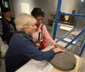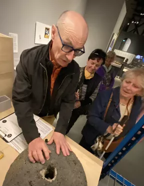 En plus des explications passionnantes de Chloé, les non-voyants ont pu palper des vestiges provenant du musée d'archéologie, ainsi qu'une maquette expliquant comment sont conditionnées les œuvres lors de leur transport ou de leur stockage quand elles ne sont pas exposées.
